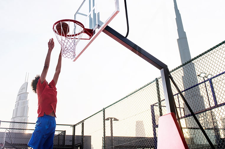 - Basketball court rates start from AED 150 for 60 minutes.