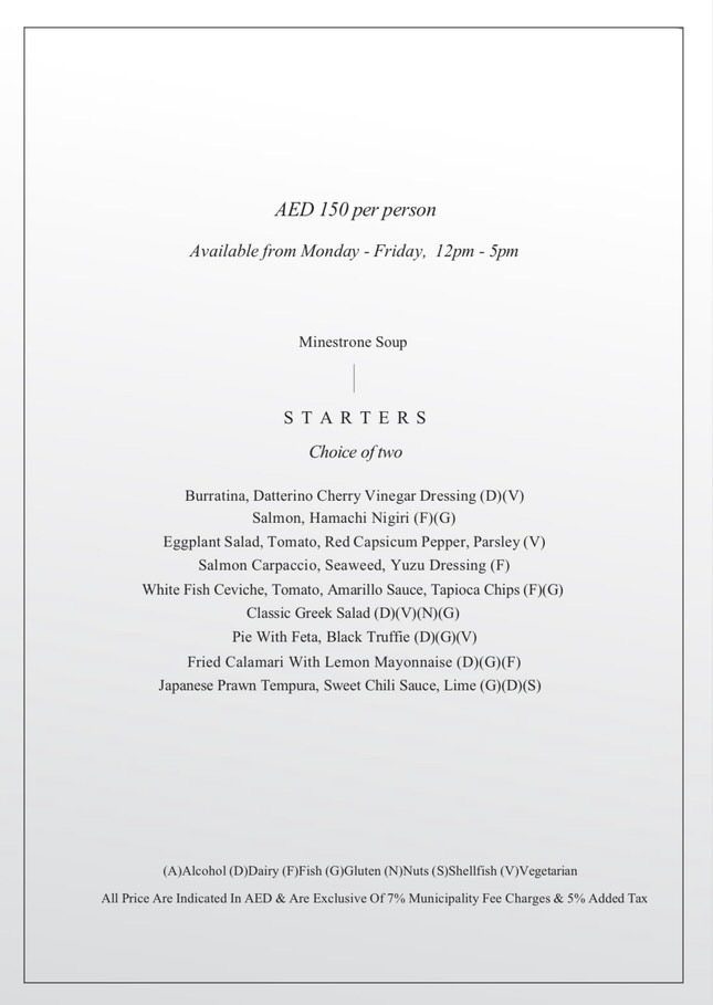 Priced at AED 150 per person, the two-course meal is available from 12pm to 5pm, Monday through Friday.