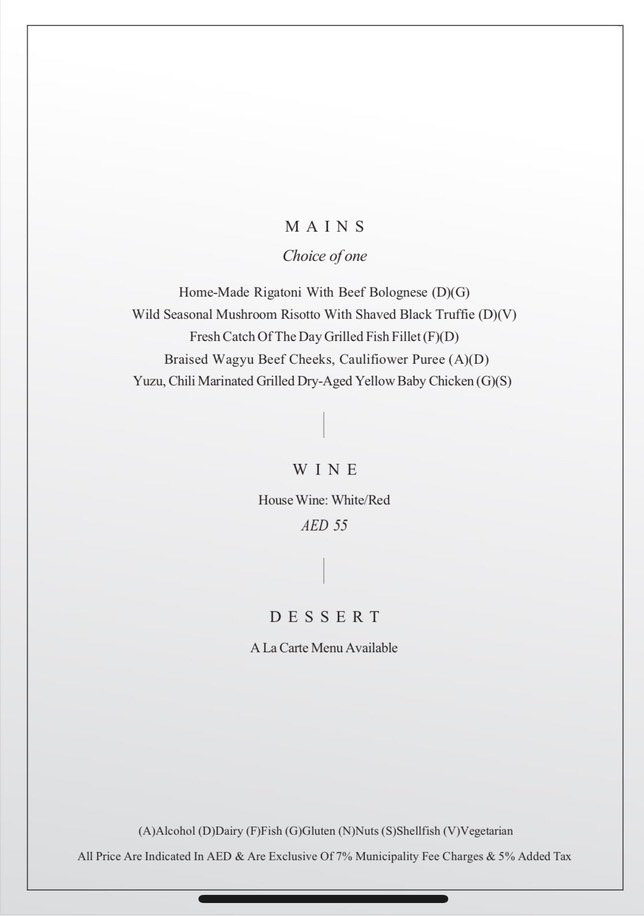 For an additional AED 55, you can raise a toast with a glass of house wine.