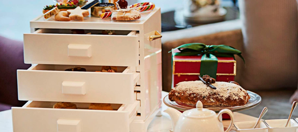 Experience the charm of London with this British-inspired festive afternoon tea that includes tiers of sandwiches, pastries, cakes and scones. Expect treats shaped like Santa’s hat and baubles.