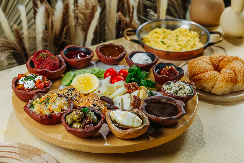 At Turkish-Mediterranean restaurant Askim, the breakfast for two (AED 99) is a generous spread where you can savour eggs with sujuk, a selection of breads and cheeses, condiments like honey, jam, and molasses, and finally wash it all down with Turkish tea.