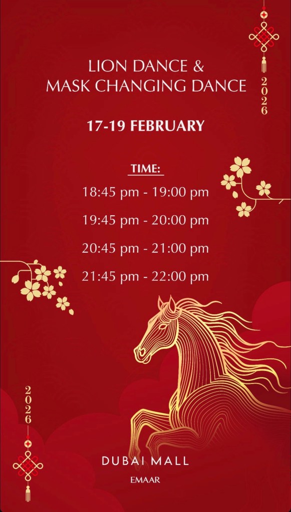 At the world’s largest mall, Chinese New Year celebrations will take place at Chinatown. From 17th February to 19th February, visitors can enjoy lion dance performances, Chinese mask-changing shows, and a variety of traditional workshops from 2pm to 10pm.